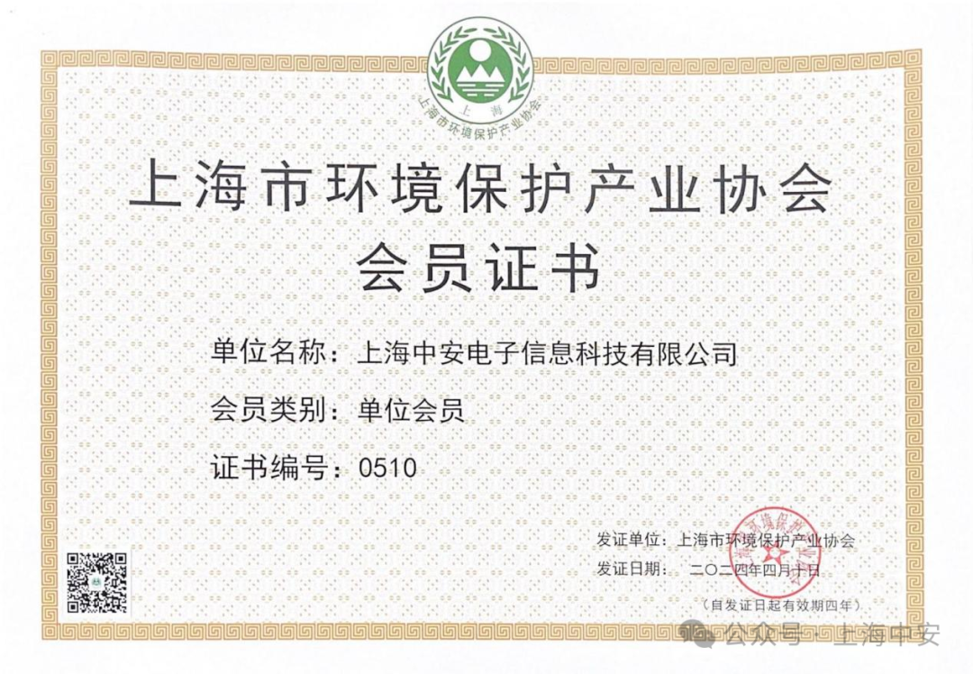 中安科技正式加入上海市環(huán)境保護產業協會(2024-04-18)